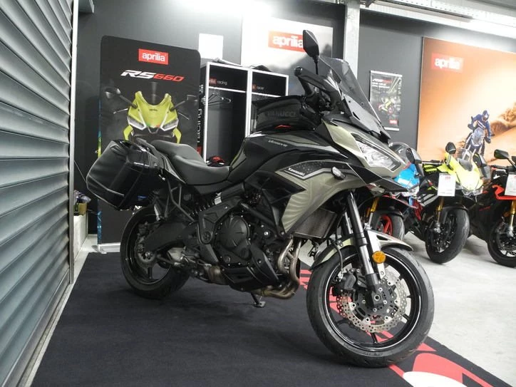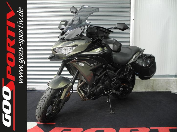 Gebrauchtfahrzeug Kawasaki Versys 650 Tourer in grün vom Kawasaki Vertragshändler mit Herstellergarantie bis 10/2027 * GUTER ZUSTAND, scheckheftgepflegt mit Tourer-Ausstattung (Heizgriffe, hohes Windschild, Original Koffer) + weiterem Zubehör (Healtech Quickshifter, Hauptständer, Tankrucksack), Reifen und Kundendienst wurden frisch gemacht