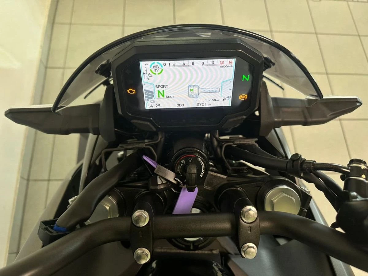 Kawasaki Z7 Hybrid - sportlicher Naked-Bike-Hybrid mit 451?cm, 6-Gang-Automatik, Kettenantrieb, ABS & Traktionskontrolle. Hybrid-System kombiniert Benzinmotor (Super 95) und Elektromotor für bis zu 380?km Reichweite. Modern, effizient und leicht zu fahren.