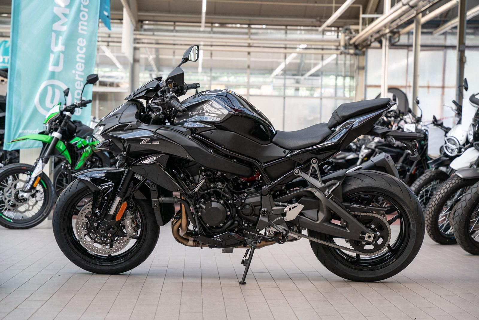 Dazu kombiniert die elegante Farbgebung, der TFT-Bildschirm der verchromte Lufteinlass die Tradition der Z mit der Technologie der H2-Modelle.