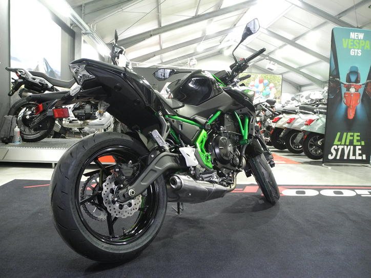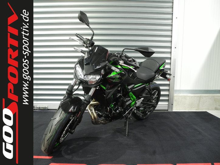 Neufahrzeug Kawasaki Z650 Modell 2025 in schwarz-grün vom Kawasaki Vertragshändler SOFORT VERFÜGBAR, 650 Euro Rabatt für Führerscheinneulinge bereits im Kaufpreis berücksichtigt, Drosselung auf 35kW für A2-Führerschein möglich gegen Auspreis möglich * deutsches Modell, kein Grauimport