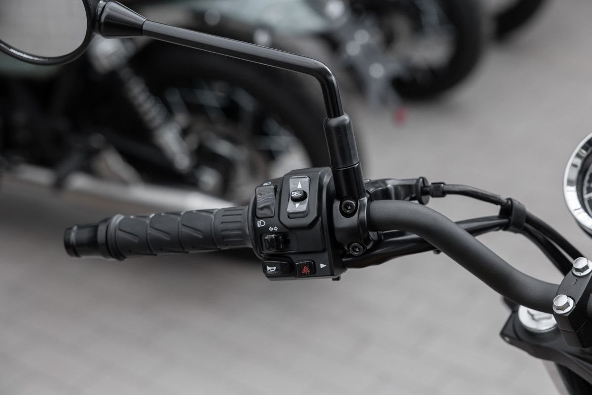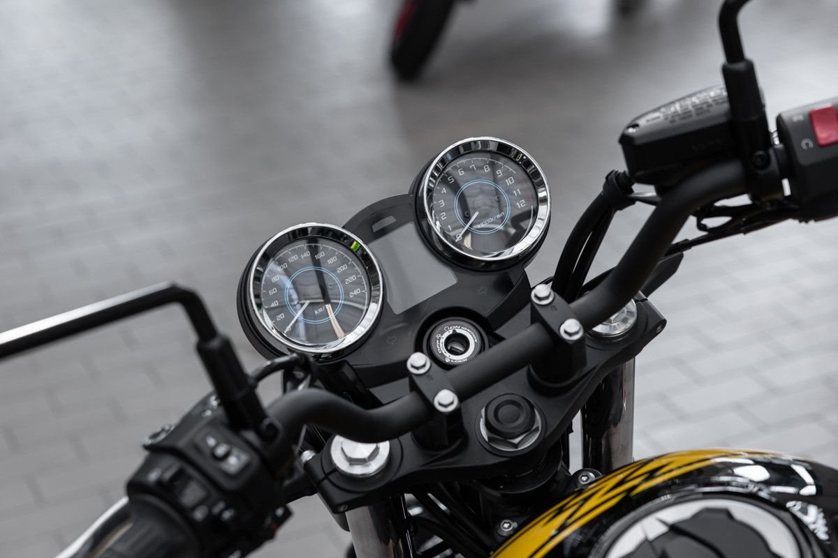 Der klassischeRundscheinwerfer ist mit moderner LED-Technologie ausgestattet, die Instrumentekombinieren analoge Anzeige mit einem Multifunktions-LCD-Display.