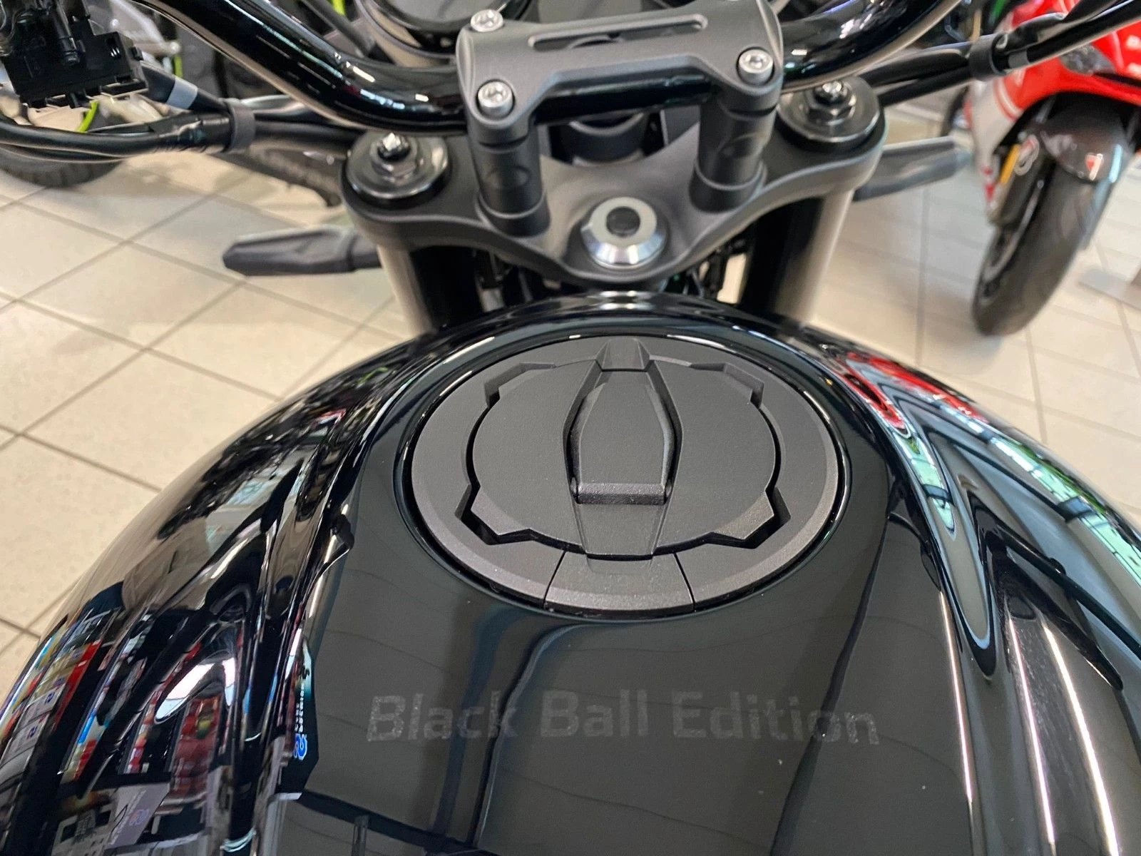 -Black Ball Edition Schriftzug auf dem Tank